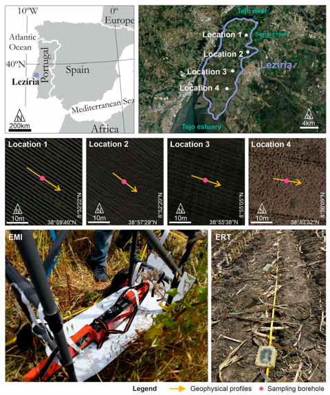 Quinta-feira, 09 de maio de 2024Através de duas técnicas geofísicas, a indução eletromagnética e a tomografia de resistividade elétrica, o grupo de investigadores portugueses mediu a condutividade elétrica dos solos e, a partir destas medições, avaliou a salinidade dos solos.